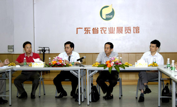 8月2日上午,省农业厅谢悦新厅长,蔡树淦总畜牧兽医师,办公室何秀古主任,人事处蔡泽辉处长一行到省农业展览馆进行工作调研。谢悦新厅长一行视察了农展馆的办公环境,查看了农展馆的部分工作设备,了解了部分工作设备的运作和使用情况,召开了副科以上干部调研会,听取了农展馆馆长肖良荣等馆领导的工作汇报。在听取了对第五届中国国际农产品交易会广东省筹备工作的汇报后,谢悦新厅长表示,今天代表厅党组来看望农展馆的全体干部职工,对农展馆全体干部职工多年来的辛勤工作和取得的成就表示慰问,勉励农展馆在新一届领导班子的带领下创新工作思路,增加职能、拓宽业务,改善结构,做出新的更大的工作成效。
