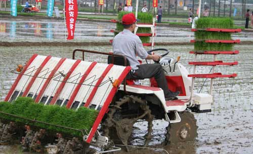 3月26日,省农业厅在江门市新会区沙堆镇省现代农业示范基地举行了“水稻育插秧机械化现场会”。这次现场会是全省农业机械化工作会议的内容之一,是为了积极实施省《关于扶持农业机械化发展的议案》,进一步宣传《农业机械化促进法》,认真贯彻2007年《中央一号文件》“加快粮食生产机械化进程,大力推广水稻插秧等农机化技术,建设现代农业”的精神,加快提高我省水稻生产各环节机械化水平,为今年的农业生产开好局而举办的。通过现场演示,向与会代表展示了机械插秧技术的先进性、适用性以及配套育秧技术的经济性与方便性,受到了与会代表和广大农民的热烈好评。水稻机械化育插秧与传统栽植方式相比,能大幅度提高生产效率、降低劳动强度,并有节省秧田、节约水肥、省工节本、利于抵抗灾害和实现高产稳产的优势,更符合我省稻作生产特点,是水稻种植机械化的发展方向。