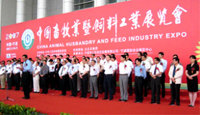 5月19日上午,2007中国畜牧业暨饲料工业展览会在浙江省宁波市国际展览中心隆重开幕。陈福林副厅长率领畜牧兽医、饲料等有关单位负责人出席展览会。