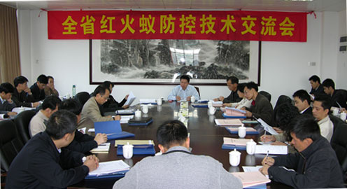 12月22-24日,广东省植保总站在广东区域植物检疫隔离实验场召开了全省红火蚁防控技术交流会,参加会议的有省红火蚁防控专家组全体成员以及全省地级以上市植物检疫工作的主要负责人。会上,专家组介绍了在红火蚁生物学特性、分子生物学、生物防治以及红火蚁专用饵剂与触杀性粉剂研制等方面的研究进展和取得的成果,各地交流了一年来红火蚁防控工作情况与成效,与会人员还参观了惠州市博罗县的红火蚁药效试验和防控现场。