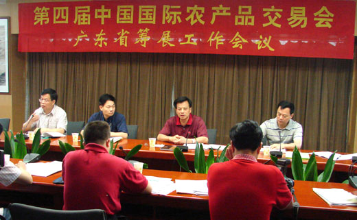 5月12日上午,省农业厅召开第四届中国国际农产品交易会(以下简称第四届农交会)广东省筹展工作会议。会议传达了《农业部关于举办第四届中国国际农产品交易会的通知》、牛盾副部长和张玉香司长在第四届中国国际农产品交易会筹备工作会议上的讲话精神,部署了我省参加第四届农交会的相关筹备工作。会议成立了第四届农交会广东筹备工作小组,负责各项筹备工作。潘嘉念副厅长在会上作了第四届农交会广东交易团参展动员讲话,市场与经济信息处邢宗和处长、办公室郑宏宣副主任、农业展览馆李海林副馆长和第四届农交会广东交易团各地级以上市联络员等出席了筹备工作会议。