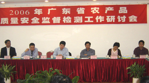 2006年3月28至29日,由江门市农产品质量监督检验测试中心承办的“2006年广东省农产品质量安全监督检测工作研讨会”在江门市召开,省农业厅市场与信息处副处长张锦生、江门市农业局副局长王义及全省20个农检中心的主要负责人共66位代表出席并参加了这次盛会。