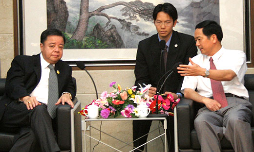7月27日上午,泰国农业合作部次长斑颇·宏通率团访问农业厅,谢悦新厅长在农业厅接待室会见了斑颇·宏通一行,并对斑颇·宏通率团来访表示热烈欢迎。谢悦新表示,中泰两国人民的友谊源远流长。近年来,我省与泰国农业交流稳定发展。双方通过政府官员和专业技术人员互访、招商洽谈会、项目合作、技术培训等形式,建立了良好的合作关系。广东与泰国在农产品进出口贸易和农业交流方面发展很快。2005年,广东省与泰国的农产品贸易额为4.74亿美元,其中广东出口额3810万美元,进口额4.36亿美元。