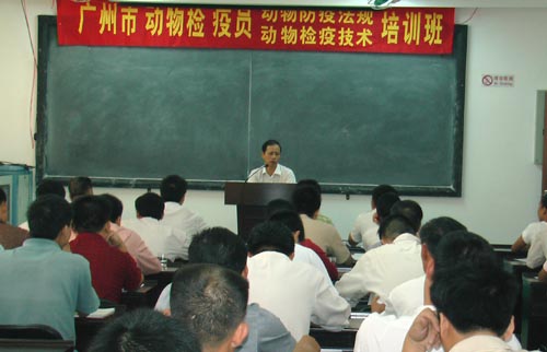 近几年来,禽流感、猪链球菌病等重大动物疫病频繁发生,曾一度引起广大群众的恐慌,也引起了各级党政部门的高度重视,为此,广州市动物防疫监督所的领导非常重视重大动物疫病防控工作以及禽畜产品的质量安全问题,并花大力气提高动物检疫员的综合素质,以确保动物以及动物产品的检疫工作落到实处。在过去三年里,在该市财政的大力支持下,广州市实行动物检疫员就业准入和国家职业资格证书制度,并实行持证上岗,普及检疫员的岗前培训,使广州市动物检疫员百分百考取国家职业资格证书。在此基础上,今年再次与我校合办了两期动物检疫员产地检疫培训班,由于领导重视,老师经验丰富,讲课深入浅出,学员普遍反应热烈,取得良好效果。同时,对10名今年新招的动物检疫员进行了动物检疫检验员国家职业资格的培训鉴定。