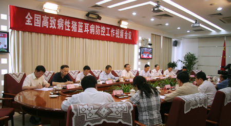 5月16日下午,农业部召开全国高致病性猪蓝耳病防控工作视频会议,农业部部长孙政才表示,当前高致病性猪蓝耳病将要进入高发季节,全国防控形势十分严峻,强调各地要坚持“加强领导、密切配合,依靠科学、依法防治,群防群控、果断处置”24字防控方针,把高致病性猪蓝耳病防控作为当前的重点工作抓紧、抓实、抓好。