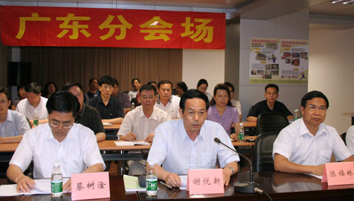 图为广东省农业厅谢悦新厅长在分会场向农业部做汇报