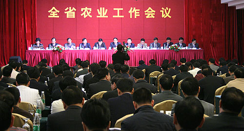 今天(2008年1月15日)上午,广东省农业厅在广州召开全省农业工作会议,深入贯彻党的十七大和省委十届二次全会、中央农村工作会议、全国农业工作会议及全省农村工作会议精神,开展解放思想学习讨论活动,认真总结2007年农业农村经济工作,对2008年农业农村工作,特别是对切实加强农业基础建设,确保农产品有效供给,促进农民持续增收,大力发展现代农业,推进社会主义新农村建设,争当实践科学发展观的排头兵的各项工作进行具体部署。省农业厅谢悦新厅长在会议作工作报告并提出了2008年全省农业农村经济工作的总体思路和目标。今天下午和明天上午,与会代表将就会议内容展开分组讨论。