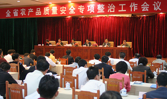 这次产品质量和食品安全专项整治是我国历年来规模最大、力度最强的一次专项整治。省农业厅谢悦新厅长强调,扎实开展农产品质量安全专项整治行动是贯彻党的十七大精神,落实科学发展观,发展中国特色农业现代化,推进农业农村经济又好又快发展,构建和谐社会的迫切要求。今年8月以来,全省各级农业部门根据国务院、农业部和省委、省政府的统一部署,做了大量工作。特别是在狠抓投入品监管、集中力量强化了源头治理,开展宣传指导、推动农产品规范生产,以及强化监督检测,突出市场监管,进一步扩大农产品质量安全监控范围,将农产品质量安全监测工作从市场推向田头。据全省第二次农产品质量安全例行监测结果显示,蔬菜样品的合格率为93.2%,同比第一次例行监测提高了6个百分点。专项整治行动取得了阶段性成效。但从最近省组织的督查和各地反馈的情况看,农产品质量安全专项整治行动开展仍不够平衡,部分地方的工作措施落实不到位,监督检查不够得力,成效不明显,工作进展比较缓慢,与国务院、农业部和省政府的整治要求有较大距离。会后,省农业厅按省委省政府的统一部署,将组织21个工作组对全省各地专项整治工作进行督导检查,深入一线掌握具体情况,帮助和指导基层解决实际问题,推动专项整治向纵深发展。