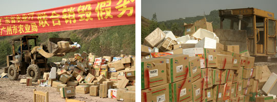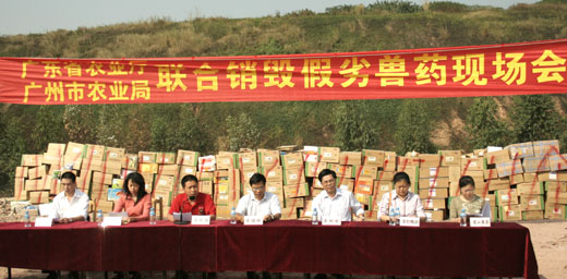 省农业厅和广州市农业局联合现场销毁假冒伪劣兽药20吨 标值200多万