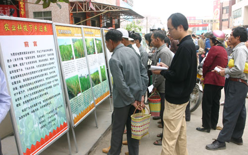 为了更好地贯彻落实全省农村、农业工作会议和省委先进办《关于开展“实践先进性,服务进农村”活动的通知》精神,根据厅领导关于农业科技下乡的具体部署,3月8-12日,由我厅科教处黄汉藩副处长和省农展馆林慧贞副馆长带队,在阳江市农业局的大力支持和密切配合下,先后在阳江市的阳春市潭水镇、阳东县大八镇、江城区平岗镇、阳西县织篢镇举办了4场大规模的农业科技下乡巡展活动。