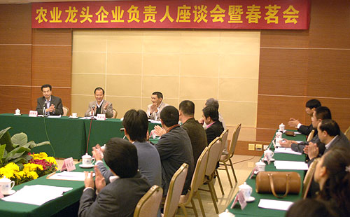 2月22日下午,省农业厅在广州召开农业龙头企业负责人座谈会暨春茗会,近30家省重点农业龙头企业负责人参加本次会议。省农业厅副厅长刘金生同志在会上通报了2007年度全省农业产业化有关工作情况和2008年度工作安排。与会代表围绕农业龙头企业生产经营动态、当前农业龙头企业及其所带动农户遭受低温冻害天气影响的损失及灾后恢复生产情况等方面进行了广泛的沟通与交流,并就下一阶段推进农业产业化经营献计献策,针对培育壮大我省农业龙头企业提出了许多宝贵意见和建议,并表示,要在巩固去年经营成果的基础上,进一步做大做强自己的企业,为农业增效、农民增收和新农村建设作出新的更大的贡献。