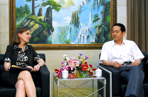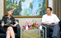 9月2日下午,谢悦新厅长接见法国驻广州副总领事孟若兰女士(Ms.Laurence Monmayrant)一行三人。谢悦新厅长与孟若兰副总领事进行亲切交谈,双方就李容根副省长率团赴法国参加国际农业食品展有关官方安排事宜交换了意见,同时就加强广东与法国农业,尤其是畜牧业、农产品加工及农产品贸易方面的合作进行了交流和探讨。双方认为,此次李容根副省长率广东农业代表团赴法国参展将对双方农业交流合作起到巨大的促进作用。孟若兰副总领事表示,法国驻广州总领事馆将与法国驻华大使馆共同协作,协助做好广东农业代表团在法国期间的有关官方访问安排,促进法国与广东农业交流合作。