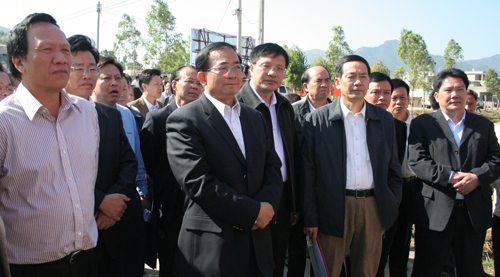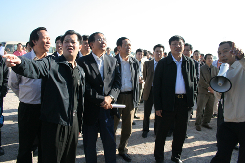 李容根副省长、省农业厅厅长谢悦新和省水利厅厅长黄柏青等领导在考察惠州市惠东县水利工程