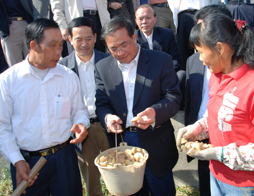 李容根副省长、省农业厅厅长谢悦新和省水利厅厅长黄柏青等领导在考察惠州市惠东县开发冬种马铃薯的生产现场