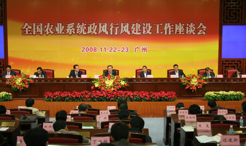 为贯彻党的十七届三中全会精神,深入开展学习实践科学发展观活动,全面推动全国农业系统政风行风建设,11月22日—23日,农业部在广州召开全国农业系统政风行风建设工作座谈会。农业部党组书记、部长孙政才在会上强调,当前,农业农村经济发展正处在攻坚克难的关键时期,迫切要求各级农业部门全面把握新形势、新任务和新要求,不断增强使命感和紧迫感,全面加强农业系统政风行风建设,以更积极的态度、更加良好的作风、更加出色的本领、更加得力的措施推动农业农村经济发展再上新台阶。