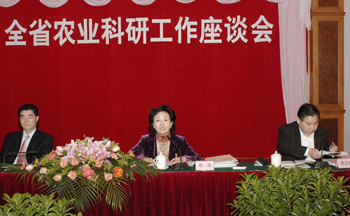 程萍副厅长在会上对座谈会作了总结讲话。她在充分肯定“十五”以来我省农业科研工作取得成就与突破的同时,也指出了我省农业科研工作存在的一些突出矛盾和问题,并就今后组织开展农业科研工作提出了几点措施和意见。她要求与会代表要牢固树立科学发展观,充分认识农业科研工作面临着前所未有发展机遇,必须增强信心,进一步巩固观念,切实加强组织领导,紧紧围绕“高起点、多目标、抓重点、建体系” 的农业科研工作总要求,勤奋工作,开拓创新,不断开创我省农业科研工作新局面。