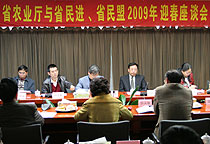 1月16日下午,广东省农业厅邀请对口联系的民主党派民盟广东省委、民进广东省委领导和专家召开迎春座谈会,通报2008年全省农业农村经济工作的情况和2009年的工作重点,征求对“三农”的工作意见。民盟广东省委主委温思美和专职副主委兼秘书长李竟先,民进广东省委秘书长胡献等12位领导和专家出席了座谈会。省农业厅蔡汉雄副厅长、程萍副厅长和厅有关处室、单位负责同志参加了座谈会。