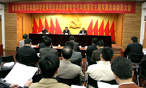 从去年9月下旬开始,省农业厅党组按照省委的统一部署,紧紧抓住“科学发展”主题,围绕“党员干部受教育、科学发展上水平、人民群众得实惠”的总要求,突出实践活动特色,联系“三农”工作实际,组织全厅各级党组织和全体党员干部积极开展深入学习实践科学发展观活动。在学习实践活动中,省农业厅坚持边学习、边发现问题、边整改,坚持用“三把标尺”来检验整改落实成效:在党员干部受教育上下功夫,努力取得和扩大思想成果;在科学发展上水平上下功夫,努力取得和扩大实践成果;在人民群众得实惠上下功夫,努力取得和扩大惠民成果。通过近半年的学习实践活动,省农业厅在思想成果、实践成果、惠民成果三个方面都有很大收获,按照要求完成规定动作,联系实际创新自选动作,全面完成了学习实践活动的各项工作任务,得到了省委深入学习实践科学发展观活动领导小组办公室和省委第三指导组的充分肯定。