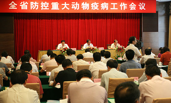 李容根副省长在讲话中深入分析了全省防控重大动物疫病和防范甲型流感工作的形势,深刻阐述了做好当前防控工作的重要意义,明确提出要进一步加强防控重大动物疫病和防范甲型流感的工作措施。他指出,国外发生甲型H1N1流感疫情后,广东迅速对生猪开展了监测排查,全省未从猪体中检测到甲型H1N1流感病毒。但是,当前广东省重大动物疫病防控任务仍然十分繁重,全省各地各部门要进一步增强危机感、紧迫感和责任感,把防控重大动物疫病作为当前的一项重要工作抓紧抓好,全力以赴严防重大动物疫情发生。一要突出抓好生猪综合防疫管理。超前做好应对生猪发生流感病毒变异的准备,加强生猪饲养管理和疫病防控。二要突出抓好畜禽强制免疫。坚持“长年免疫、全年防控”的工作方针,确保禽流感、口蹄疫、高致病性猪蓝耳病、猪瘟等强制免疫率达到100%。三要突出抓好疫情应急管理。各级要成立应急预备队,健全突发动物疫情预警预报和应急机制,提高应急管理能力。四要突出抓好稳定发展生猪生产。在做好疫情防控的同时,千方百计稳定生猪生产,把贯彻落实珠江三角洲改革发展规划纲要和实施广东省生猪生产发展规划、建设重点生猪养殖场紧密结合起来,推进畜牧业现代化建设,促进畜牧业健康发展。