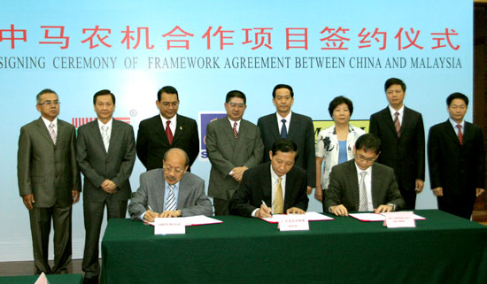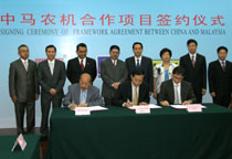 6月5日上午,中马农机合作项目签约仪式在广东省农业厅隆重举行。广东省农业机械研究所、大马工业规格及研究有限公司、马中农业机器(马)有限公司三方企业代表签署了合作备忘录。根据备忘录,三方企业将合作共同推动马来西亚的农业机械化发展,由大马工业规格及研究有限公司负责机械鉴定研究计划工作,广东省农业机械研究所提供农业机械技术研发工作,马中农业机器(马)有限公司具体负责商业化研究产品。马来西亚科技创新部部长Dr.Ongkili、广东省农业厅厅长谢悦新等领导及代表见证了签约仪式。
