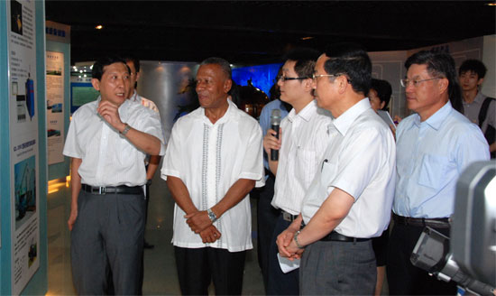 随后,Honourable Tillman Thoms总理一行在谢悦新厅长等领导的陪同下参观了农机所的科研成果展示厅、农产品加工实验室,观看了农机所生产的农机产品,在参观过程中,Honourable Tillman Thoms总理非常认真地听取了林仰南所长对每个产品的介绍,对农机所的研制的农机产品尤其是小型农机具表示了浓厚的兴趣。