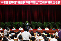 昨日(6月25日)上午,省委、省政府在广州召开全省扶贫开发“规划到户责任到人”工作电视电话会议。中共中央政治局委员、省委书记汪洋,省委副书记、省长黄华华,省人大常委会主任欧广源出席会议,汪洋、黄华华作重要讲话。会议强调,必须创新扶贫方式,增强扶贫能力,发动全社会力量积极参与扶贫开发,先富帮后富,加快实现全省人民共同富裕,促进我省城乡和区域协调发展。