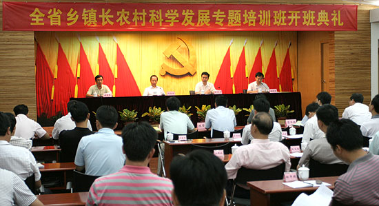 由省人事厅组织、省农业厅农干校承办的2009年全省乡镇长农村科学发展专题培训班在我厅隆重开课。7月6日下午,培训班举行了开班典礼。省委组织部副部长、省人事厅厅长欧真志,省农业厅副厅长刘金生出席了开班典礼。