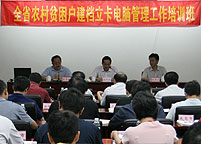 会议对“建档立卡、电脑管理”工作提出了四点要求。一是核准贫困村内贫困户情况。要求结合帮扶单位进村入户调研、制定帮扶计划工作的同时,严格按照省定贫困户标准(年人均纯收入1500元以下),对帮扶贫困村内的贫困户进行重新核准,按照省扶贫办关于建档立卡电脑管理工作要求进行建档立卡录入电脑管理,并逐级上报调查核准的情况。二是贫困村、户资料录入要求。要求各市县扶贫办要认真抓好工作,尽快收集完善贫困村、户档案和印发《帮扶记录卡》。三是建立全省扶贫网站群。省扶贫办已经建设开通了广东省扶贫信息网,除20个县由省统一组织开发外,有能力的市、县可单独建立扶贫网站,也可以利用当地政府网站平台设立扶贫专栏,并与省扶贫信息网链接,争取在10月前开通各县(市、区)子网站,做到及时公开本区域的贫困村基本情况和落实“规划到户责任到人”帮扶工作情况。四是配备专人,确保有人干事、有钱办事。各有关市县扶贫办要把解决当前建档立卡电脑管理所需的专职人员配备和经费预算问题,积极主动向本级党委政府及有关主管部门反映,争取得到支持,推动工作开展。
