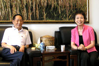 6月30日,省农业厅程萍副厅长带领厅科教处、省水稻产业创新团队有关专家和超级杂交稻高产示范工程示范点——珠海市农业局有关领导一行,顶着高温酷暑,来到位于湖南长沙的国家杂交水稻工程技术研究中心,登门拜访了湖南省政协副主席、中国工程院院士、国家杂交水稻工程技术研究中心主任袁隆平先生,亲自汇报了上半年广东省超级杂交稻高产示范工程项目的组织实施情况和下半年的工作计划。袁院士热情接见了程萍副厅长一行,召集有关专家对项目实施进行了座谈。