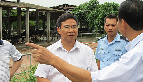 为加快转变畜牧业发展方式,提高综合生产能力,大力推进畜禽养殖标准化生产,保障畜产品有效供给和提高质量安全水平,7月26-27日,广东省农业厅党组成员、巡视员陈福林同志带领厅有关处室、事业单位负责人到惠州市龙门、博罗县以及惠城区对当地开展畜禽养殖标准化示范创建活动进行调研。陈福林同志一行分别深入到龙门县南昆山乳业有限公司、惠州健源奶牛发展有限公司、惠州市兴牧畜牧发展有限公司、惠州市源茵畜牧科技有限公司、惠州市金种家禽发展有限公司等5家大型畜禽养殖企业进行调研,并听取了惠州市畜牧兽医行政主管部门的汇报。