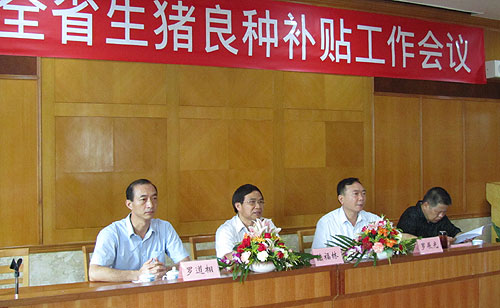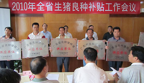9月2日,广东省农业厅在广州召开2010年全省生猪良种补贴工作会议,19个项目县畜牧兽医主管部门、47个良种猪精液供应单位主要负责人参加了会议。会议由省畜牧兽医局罗展光副局长主持,省畜牧兽医局畜牧处处长罗道栩通报了2007-2009年全省生猪良种补贴项目实施情况,讲解了2010年实施方案,省农业厅党组成员、巡视员陈福林出席会议并作讲话。