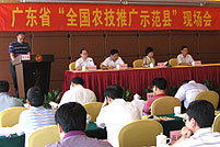 程萍副厅长强调,实施全国农技推广示范县是贯彻落实党的十七届三中、四中全会和中央1号文件精神的重要措施。对于加快推进基层农技推广体系改革与建设,加强农技推广工作,提升农民科学种养水平,全面推进农业科技进村入户具有重要作用。特别是2010年是我省建设农业强省、转变农业发展方式的关键之年,是巩固基层农技推广体系改革成果、加强基层农技推广体系建设的攻坚之年,也是全国农技推广示范县项目总结经验、再创辉煌的一年。各示范县要站在夯实农业基础地位、促进农民持续增收的高度认识实施全国农技推广示范县项目的重要意义,深刻学习农业部文件精神和工作部署要求,认真深入总结经验,明确目标任务,突出重点环节,精心组织,强化措施落实,全面推进示范县项目建设深入实施。做好“七个着力抓好”:一是要着力抓好示范县的科技创新工作,为全省探索一套适合广东实际、易于农民掌握操作的先进农业生产技术;二是着力抓好示范县的辐射带动工作;三是着力抓好基层农技推广体系改革与建设工作;四是着力抓好农技推广队伍建设工作;五是着力抓好农技推广人员培训工作;六是着力抓好项目建设管理工作;七是着力抓好项目建设宣传工作。