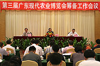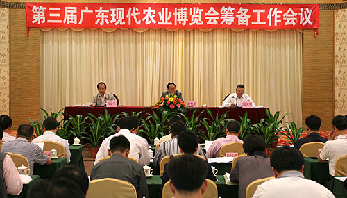 省政府高度重视办好第三届农博会,为加强组织领导,专门成立了组委会。由李容根副省长担任组委会主任,省政府副秘书长颜学亮、佛山市委书记陈云贤和省农业厅厅长谢悦新担任组委会副主任,省直有关单位和各地级以上市政府的分管领导任组委会成员。组委会下设办公室。会议要求,各有关单位务必高度重视,切实加强领导,明确责任分工,加强宣传组织,形成上下联动,统一协调组织展示、推介洽谈等活动,确保高水平、高质量完成各单位展示区的设计布展工作,齐心协力把农博会办出新特色,办出新水平,办出新成效。