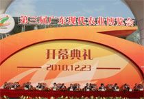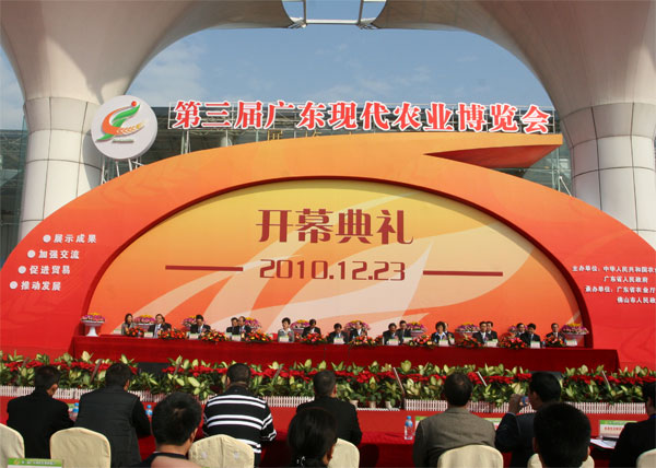 12月23日上午,由农业部和广东省政府联合主办,广东省农业厅、佛山市政府承办的第三届广东现代农业博览会在佛山市顺德区陈村花卉世界开幕。省长黄华华出席开幕式并宣布第三届广东现代农业博览会开幕,副省长李容根、省政协副主席温兰子、农业部总经济师张玉香、广东省农业厅厅长谢悦新等出席开幕式。