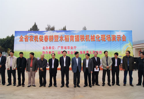 今天(3月15日)上午,广东全省农机促春耕暨水稻育插秧机械化现场演示会在汕尾市海丰县举行。省农业厅副厅长郑惠典、副巡视员陈华富,汕尾市副市长骆金堤等领导出席了现场会。