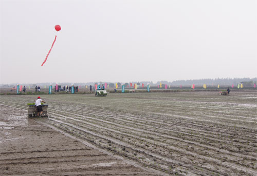 简短而隆重的启动仪式后,郑惠典一行参观了现代农机展示、水稻大田机插秧现场演示、育秧现场演示和抽水演示。
