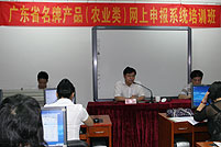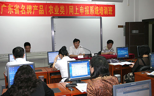 4月21日,广东省农业厅市场与经济信息处在省农业干部学校召开全省名牌产品(农业类)网上申报系统培训班,各地级以上市农业、畜牧业、林业、海洋与渔业行政主管部门承办广东省名牌工作的科长、经办人员,省名牌产品推进委员会各专业委员会经办人员共80多人参加了培训。市场与经济信息处程文章处长出席会议并讲话,黄好传副处长主持了会议。