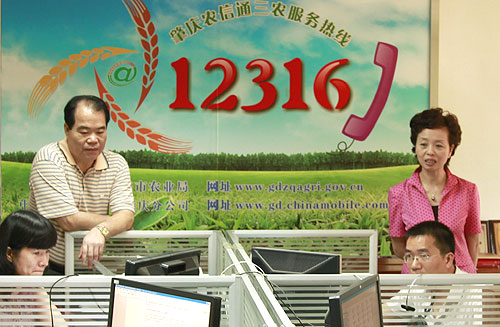 程萍副厅长一行在调研中关注最多的是为农民提供什么信息?农民通过什么方式获得他所需要的农业信息?通过调研详细了解了肇庆市12316工作室的情况和12316 “三农”服务电话热线、农信通短信服务、田园风景线电台节目、菜蓝子手机快讯等“三农”信息服务项目。其中,肇庆市农业局与移动公司合作,通过手机、固定电话、广播电台、互联网、12316服务热线等多种途径,把农业系统所特有的农业信息资源向农民及时、准确发送他们所需要的农业信息,包括农业政策、市场价格、农产品供求、种养技术等信息,为农民在农业生产中、农产品销售流通中提供信息指导服务。程萍副厅长表示,通过多种渠道的科技手段为农民提供各种农业信息,让农民朋友随时随地都能了解到他们关心的“三农”资讯,这种多形式相结合的信息服务工作值得推广。