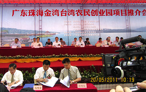 5月20日,由广东省农业厅、珠海市人民政府联合主办的珠海金湾台湾农民创业园项目推介会在珠海金湾台湾农民创业园隆重举行。国家农业部海峡两岸农业交流会会长于永维、广东省农业厅巡视员刘金生、广东省委台办副主任张科、珠海市副市长金展扬等领导出席会议并致辞。在推介会上,一批台湾特色农业、现代农业、精致农业签约项目将入驻园区,总投资额达1.27亿元,成果喜人。