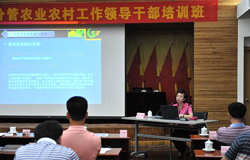 6月1日省农业厅副厅长程萍就“科技引领广东现代农业发展”给学员授课