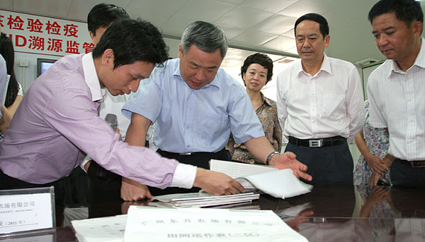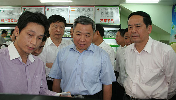 黄龙云主席一行分别到广州市东升农场有限公司、广州市番禺区禺锋蔬菜种植农民专业合作社基地现场调研。在广州市东升农场有限公司基地,黄龙云主席重点调研了“农田到餐桌”的全程安全跟踪体系运作情况,详细了解了该公司对选种、育苗、田间种植、采收、加工等一系列流程的严格质量控制标准。黄龙云主席对该公司以科学管理为导向,把GAP、ISO、HACCP等管理体系引入农业生产与营销流程,给予了充分肯定。当得知该公司的网络信息化管理质量追溯系统已经开发完成并进入试用阶段时,黄龙云主席高度关注,强调现代农业企业发展要积极利用信息化手段,促进在农产品在质量安全追溯等方面的应用。