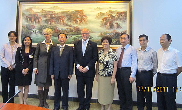 11月7日下午,加拿大卑诗省农业厅副厅长维斯·舒梅克一行到省农业厅访问,厅党组成员、巡视员刘金生和副巡视员潘雪芬等热情会见了代表团一行,双方就如何落实备忘录进行了深入探讨,双方均同意在备忘录的框架内,进一步加强在农业领域的合作,实现互利共赢。