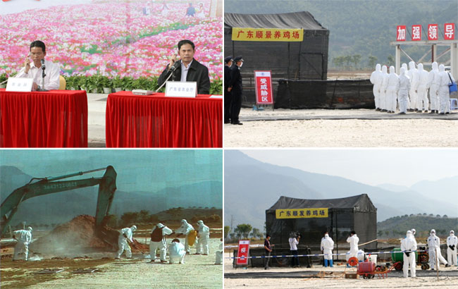 演练假定广州从化某鸡场发生高致病性禽流感疫情,在农业部的指导下,广东省各级各有关部门迅速启动Ⅳ级应急响应,在第一时间扑灭疫情。农业部及时向香港、澳门兽医主管部门通报疫情,香港、澳门迅速采取相应防控措施。演练主要分三个科目:一是疫情监测报告和先期处置,二是应急响应与应急处置,三是应急响应终止与善后处置。