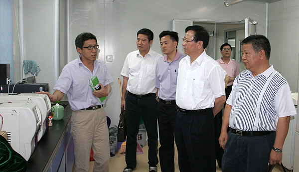 随后,陈家记书记一行察看了省种猪测定中心,现场考察了实验室的环境设施及仪器设备运行状态,并看望慰问技术人员。