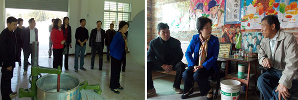 潘雪芬一行现场考察了茶叶种植示范基地、生态鱼塘等扶贫项目;参观了村口美化、茶叶合作社、茶叶加工厂、中心区文体与幸福广场等;听取了三年来厅帮扶罗洞村“双到”工作情况汇报,并与县、镇负责领导、村两委班子及驻村工作队进行了座谈,详细了解三年来省农业厅帮扶罗洞村各项工作的进展落实情况。