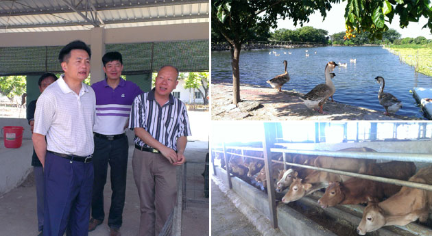郑惠典副厅长一行走访了汕尾市海丰县、陆河县的基层畜牧兽医工作机构和广东双全种养公司,汕头市潮南区枫桦养殖公司、潮阳区德兴种养公司、白沙畜禽研究所狮头鹅保种场,潮州市广东万泰农牧公司、潮安县雄盛种养公司、饶平县丰乐狮头鹅饲养公司等,重点调研发展肉牛养殖、牧草种植、狮头鹅保种和繁育推广以及当前畜禽生产形势、市场行情和对策措施。郑惠典副厅长强调,要加快引进推广养殖优质肉牛,开发利用闲置山坡地建设草场,研发推广养牛和牧草种植技术,加强保护和发展狮头鹅等地方特色优质畜禽品种,努力推动广东省畜牧业优化结构,转型升级。