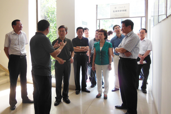 4日上午,张桃林副部长一行视察了深圳大学,实地参观了该校生命科学学院的植物抗疫实验室、海洋生物资源与生态环境重点实验室和30年办学成果展览馆,听取了学校建设情况和实验室科研情况汇报,交流了学校办学规模、师资队伍、校园生态、校区建设及科研团队、科研经费、科研成果转化等工作。他对学校30年办学经验给予了充分肯定,并高度评价了两个实验室的研究方向以及成果转化与深圳经济社会发展结合紧密,应用性强。下午张桃林副部长一行来到位于深圳大鹏新区的中国农科院深圳生物育种创新研究院和深圳华大基因研究院,实地调研了中国农业科学院深圳农业基因组研究所筹建运行情况。张桃林副部长表示发展农业基因大数据对中国农业科技体系创新具有重要意义。农业部将支持中国农业科学院深圳农业基因组研究所在现有农业基因组学计算平台上申请设立农业部农业基因大数据重点实验室,纳入农业基因组学学科群内进行管理。