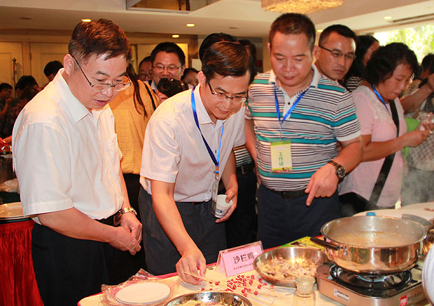 此次农产品展馆布置别致,产品种类众多、介绍明细,现场举行的烹饪、试吃环节,更是让人在一饱口福中真真切切感受到了广东名牌农产品的“色香味”。“潮兴”沙栏鸡、“绿之选”菜心、“珍香”优质丝苗米、“顺明”鸡蛋和“生生鱼”等近60种名特优农产品一期亮相,着重体现出创建名牌追求众乐乐的和谐。