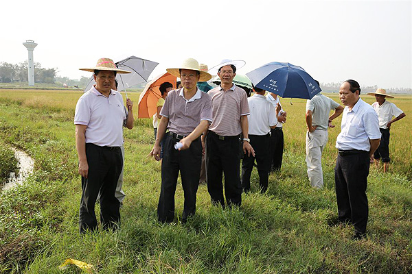 为贯彻落实省政府领导指示,根据厅主要领导安排,省农业厅于9月23至24日,派出了以陆国煌总农艺师为组长,厅种植业处、省耕地肥料总站、省农科院作物研究所、广东海洋大学等单位专家教授组成的专家组,到湛江雷州指导台风“海鸥”灾后农业复产工作,特别是解决海水倒灌严重影响农田耕地土壤和农作物问题。