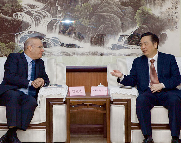 2014年12月5日上午,以色列驻广州总领事馆安亚杰总领事及经济与商务领事海诺娅一行到访省农业厅。郑伟仪厅长向总领事一行介绍了广东农业发展情况,并就在农业灌溉、节水和污水处理技术、农业生物技术、信息技术应用等方面的合作展开了讨论。双方一致同意进一步发挥互补优势,充实和加强在节水农业技术、设施农业、育种技术以及技术培训等重点农业领域开展合作,推动双方关系取得新的成果。